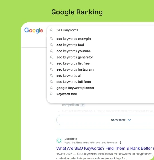 Rank higher on Google with AI-powered SEO strategies that drive consistent, high-intent organic traffic.